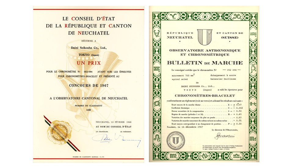 From 1963, Seiko participated in the Neuchatel chronometer competition. In 1967, Seiko was awarded 2nd and third places. This was the last year of the competition.